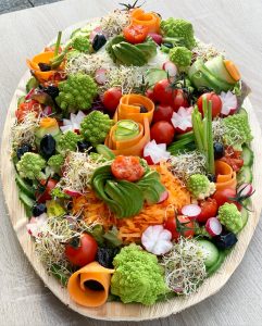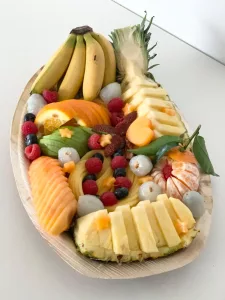 Des compositions artistiques sous forme de plateaux 100% fruits découpés